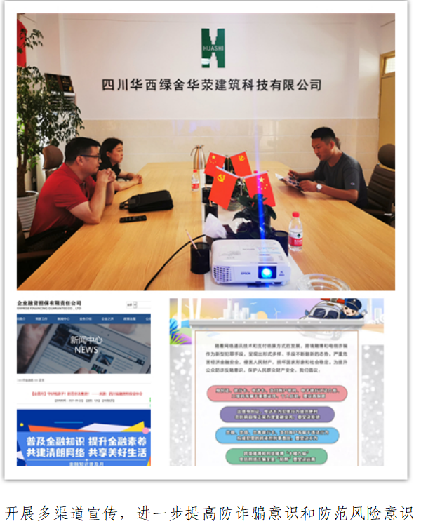 9月以來,市擔(dān)保公司結(jié)合實(shí)際情況,采取線上線下的方式,一方面通過公司的門戶網(wǎng)站、微信公眾號(hào),轉(zhuǎn)發(fā)金融知識(shí)普及月的相關(guān)知識(shí),提升防范化解金融風(fēng)險(xiǎn)的意識(shí),積極營(yíng)造清朗金融網(wǎng)絡(luò)環(huán)境;另一方面通過加強(qiáng)盡職調(diào)查、財(cái)務(wù)分析、職業(yè)道德、業(yè)務(wù)技能、思想品德等方面的集中培訓(xùn),強(qiáng)化職工職業(yè)素養(yǎng)和業(yè)務(wù)水平,為廣大中小企業(yè)和“三農(nóng)”提供更加優(yōu)質(zhì)便捷的金融服務(wù),切實(shí)緩解“融資難、融資貴”等問題。同時(shí),公司客戶經(jīng)理在外出辦理業(yè)務(wù)時(shí),也積極向廣大客戶進(jìn)行宣傳,進(jìn)一步提升中小企業(yè)業(yè)主和農(nóng)戶的金融素養(yǎng),提高防詐騙意識(shí)和防范風(fēng)險(xiǎn)意識(shí),切實(shí)維護(hù)了金融消費(fèi)者的合法權(quán)益。